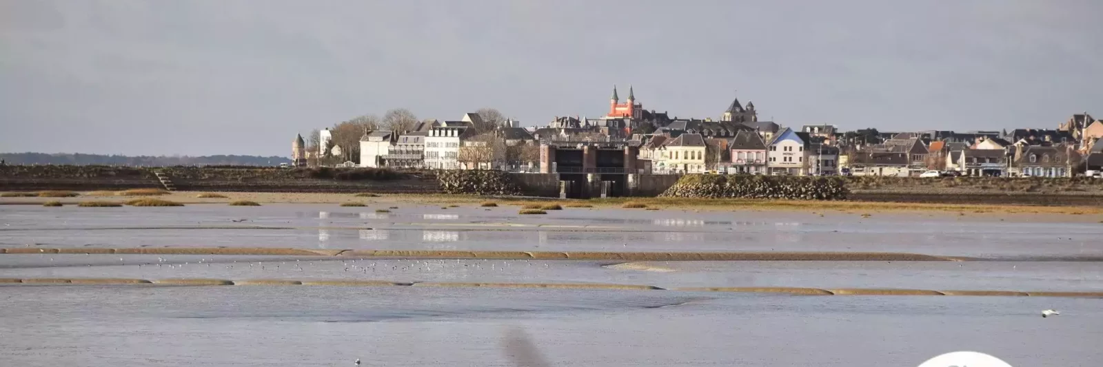 Vous pourrez aller de l’autre côté de la baie, au Crotoy via Noyelles-sur-Mer par le petit train de la baie de Somme. Sinon, vous pourrez prendre la route en vélo ou en auto, et vous arrêter au bassin de chasse à gauche avant Le Crotoy. Vous pourriez arriver à pied sur le port en marchant autour de cette étendue d’eau qui visait autrefois, à chasser le sable du port, en lâchant une réserve d’eau de mer remplie pendant les marées hautes.